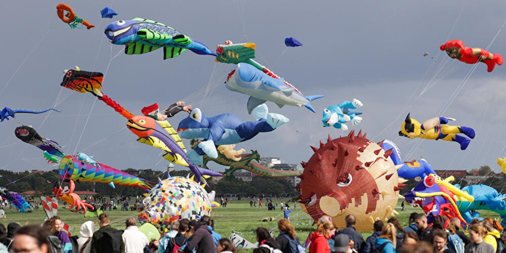 Internationale Drachenkünstler:innen zeigen ihre beeindruckenden Kreationen am Himmel.