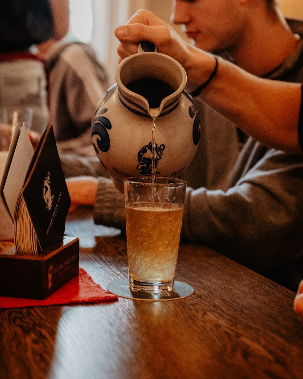 Hier gibt es Frankfurter Lebensart pur bei traditionell hessischer und deutscher Küche sowie diversen Sorten Apfelwein. Es geht dem Hof-Team darum, Altbewährtes mit Neuen zu kombinieren und Akzente zu setzen - unter anderem mit regionalen und saisonalen Highlights wie Spargel, Pfifferlinge, Wild und Gans.