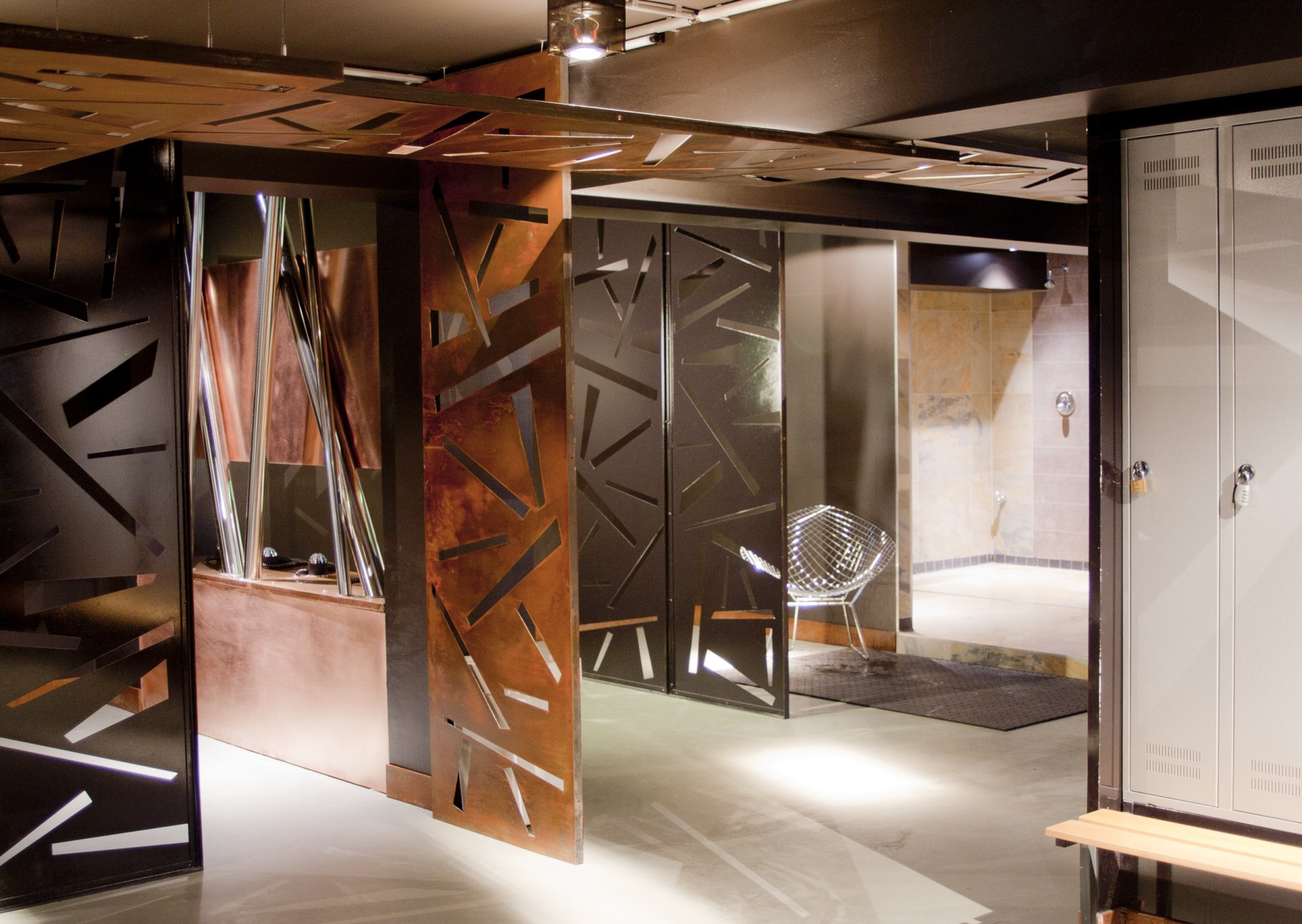 Die Umkleiden sowie die Lounge wurden mit diversen Designelementen ausgestattet und bieten eine echte Wohlfühlatmosphäre.