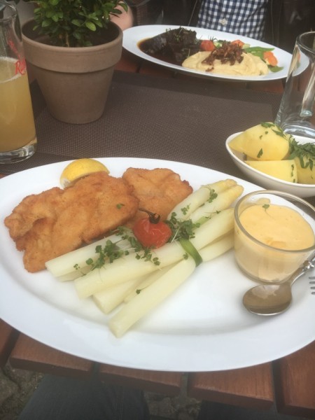 Die Küche wird von Zulieferern aus der Region mit Gemüse, Fisch und Fleisch versorgt. Die Speisekarte bietet einige Klassiker: Tafelspitzsuppe mit Wurzelgemüse oder Handkäs' mit Musik, das Original Wiener Schnitzel vom Kalb, die Kalbsleber "Berliner Art", zartgeschmorte Rinderroulade, das Argentinische Rinderfiltet oder ein Filet vom Bach-Saibling oder vom Zander. Und für die Kleinen gibt es eine Kinderkarte.